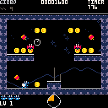 Each stage features Gibbo, coins, key bits and enemies. Your objective is to grab all the bits that will open the exit door, clearing the level and exiting the stage.