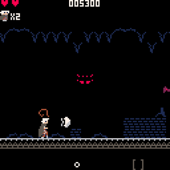 During the Action Stage, enemies spawn as you make the level scroll forward. Hitting them with your whip will make them run off and award you points!